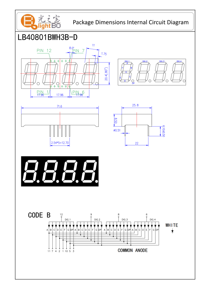 7 Segment-LED-Anzeige, 4-stellig, 0,8 Zoll, ultrahell, weiß, gemeinsame Anode für ICP-Monitore